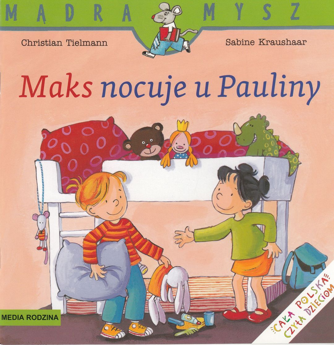 Hurra! Maks może pierwszy raz spać u Pauliny. Szybko pakuje swoje rzeczy: pidżamę, szczoteczkę do zębów i oczywiście – latarkę. Ale czy uda mu się zasnąć bez buziaka mamy na dobranoc?