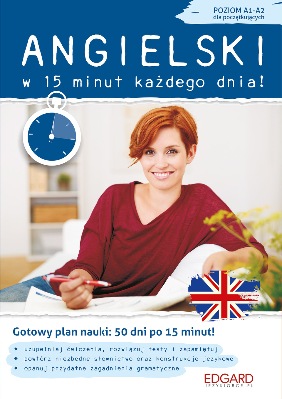Gotowy plan nauki: 50 dni po 15 minut! Angielski w 15 minut każdego dnia dla początkujących (A1-A2) to wyjątkowy kurs do nauki języka angielskiego przeznaczony dla wszystkich, którzy mają mało czasu na naukę, a chcą poznać nowe słownictwo oraz utrwalić zagadnienia gramatyczne. Różnorodne zadania, ćwiczenia i łamigłówki uatrakcyjniają naukę i sprzyjają zapamiętywaniu. Specjalnie opracowane zestawy zadań zostały podzielone tak, by wykonanie jednego rozdziału nie zajęło więcej niż 15 minut! Wystarczy wygospodarować zaledwie kwadrans dziennie, by po już kilku tygodniach widzieć efekty. Angielski w 15 minut każdego dnia to: gramatyka dnia codziennego, m.in. czasy gramatyczne, czasowniki modalne, stopniowanie przymiotników małe, ale znaczące zagadnienia, przymiotnik wskazujący przydatne słownictwo z różnych grup tematycznych, wciągające ćwiczenia, np. łączenie w pary, testy wyboru, wykreślanki, krzyżówki i inne.